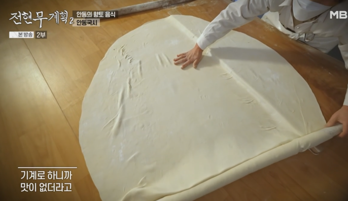 이곳의 안동국시는 기계 반죽이 아닌 전통 방식 그대로 홍두깨로 밀어 만든 수타면을 사용합니다. 처음에는 기계로 반죽을 시도했지만, 맛이 없어 결국 손으로 직접 반죽하고 썰어내는 방식을 고수하고 있습니다. 이러한 정성 어린 과정이 국시의 맛을 더욱 특별하게 만듭니다.