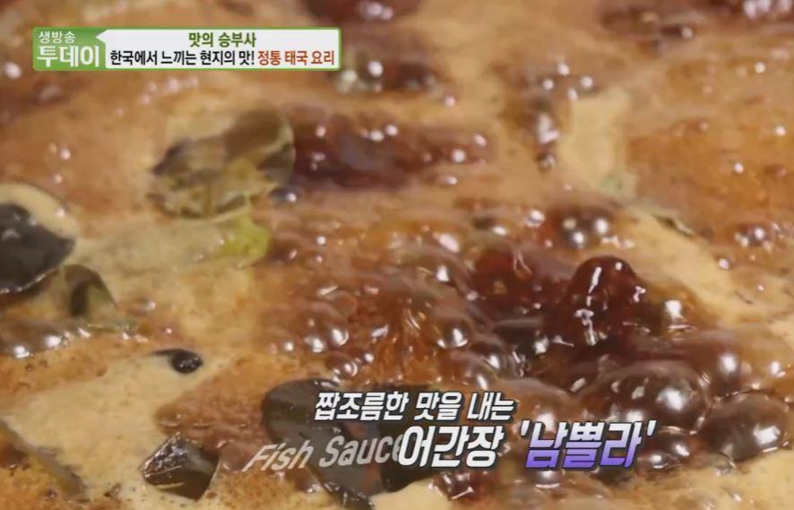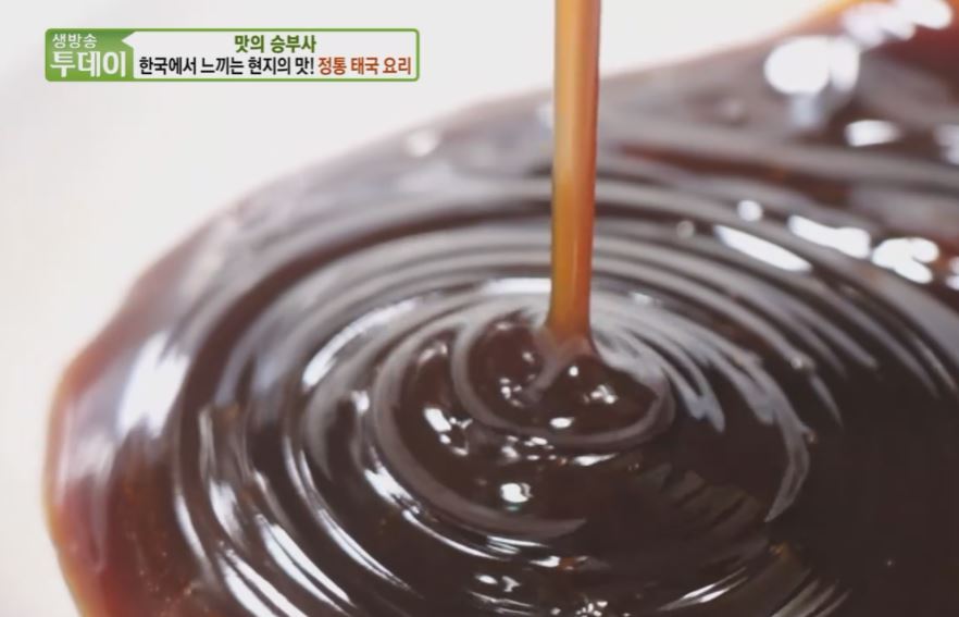 태국 특유의 풍미를 제대로 살려준다는 특제 소스는 대파를 썰어주고 프라이팬에 볶아줘 파기름을 낸 후 마늘, 생강, 양파를 넣고 마무리로 이 국물을 넣어 섞어줘야 한다는데 태국에선 어간장이 향신료와 더해져 요리의 기본으로 많이 사용되고 있다는데 우리나라로 치면 소금의 역할을 대신해주는 거랄까 태국은 섬나라다 보니까 생선이 많이 잡혀서 어간장이 많이 발달돼 있는데 간장을 끓여가지고 태국 현지에서 사용하는 굴소스를 만들 거예요.