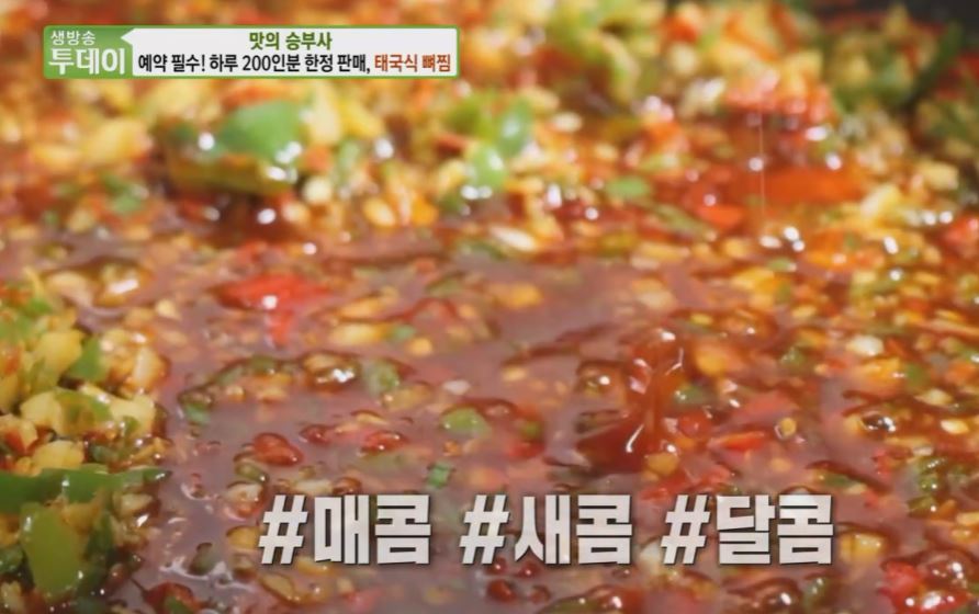 매콤새콤달콤 다하는 태국 본연의 맛 한 접시에 담아내기 어려운 등뼈의 크기 때문에 쌓고 쌓고 또 쌓아줘야 한다는데 태국 잡내가 하나도 안 나서 놀랐고요그리고 살이 너무 쏙쏙 잘 빠져가지고 손에 들고 먹고 뜯고 맛보다 보면 밥 한 술 꼭 뜨게 된다는데 양념이 부드럽게 발라진 고기를 태국 소스와 함께 비벼 먹는 게 바로 현지의 스타일이라고요.