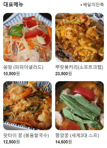 태국 음식은 한 15가지 정도 되는데 그 음식들이 전부 태국의 대표적인 음식들이에요.