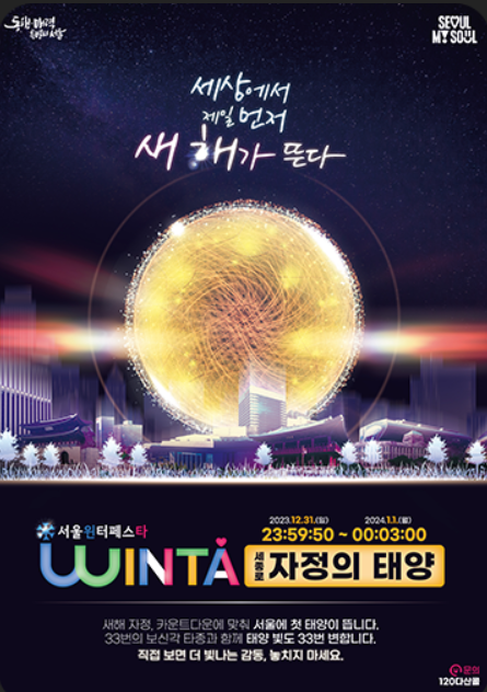 - 12.31.(일) 밤 11시~ ’24.1.1. 새벽 1시 보신각~세종대로 ‘새해맞이’ 행사