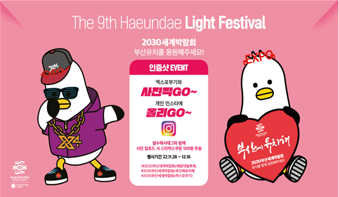 제 9회 해운대 빛 축제 개최 / 2030 부산 세계박람회 포토존 인증샷 이벤트 진행