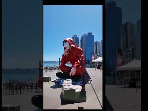 종이의 집: 공동경제구역, 빨간 옷에 하회탈을 쓴 4m 강도가 해운대에 나타났습니다. 해운대 마린시티 더베이 101에서 거대 강도단을 만나보세요