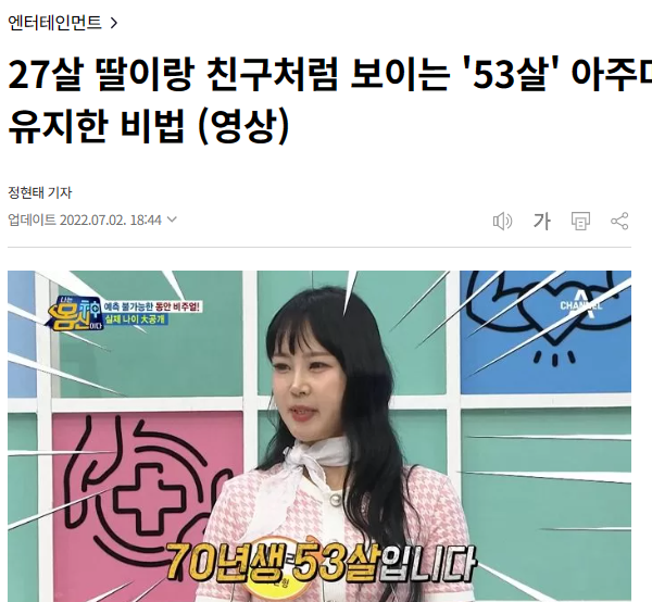 27살 딸이랑 친구처럼 보이는 ‘53살’ 아주머니가 탱탱한 피부 유지한 비법 (영상) - 인사이트