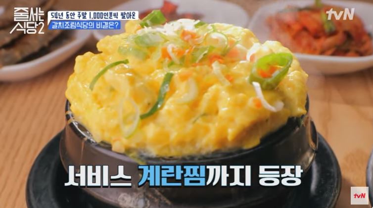 계란찜은 부드럽고 크림 형태로 갈치조림과 함께 먹으면 최고의 조합입니다.