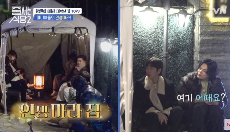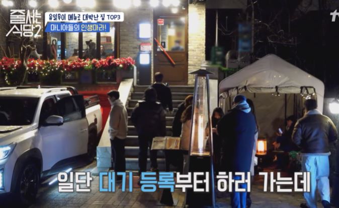 줄서는식당2 한혜진과 박나래가 압구정 로데오에서 영하 10도의 추위를 뚫고 1시간 30분을 기다려 고인돌 뼈삼겹을 비롯해 10가지의 메뉴를 주문 했습니다. BTS 정국이 인증한 또간집으로 안내합