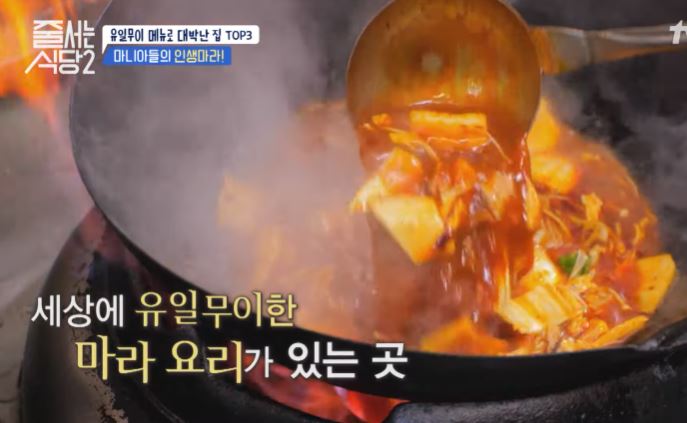 유일무이 메뉴로 대박난 집 마니아들의 인생마라 하루 평균 방문자 수 300명 줄서는식당2 정혁과 이주승은 송리단길에 위치한 마라계의 1티어 핫플에 방문하여, 마라 곱창전골의 세계로 안내 받았습니다.