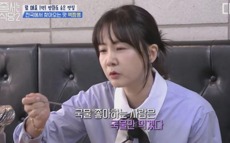 소현은 국물을 먹자마자 너무 맛있다고 소식좌과 그릇을 들고 국물을 맛봅니다.