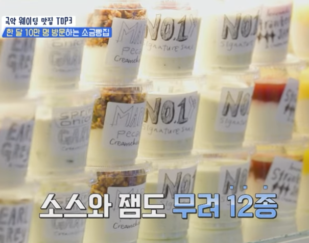 티라미수 크림, 감자 치즈, 우유크림, 프레첼 버터, 블루베리, 코코넛 등 소금빵 종류만 무려 23가지입니다. 하루 만드는 밀가루의 양이 250kg으로 한 달에 밀가루만 약 7.5톤입니다.