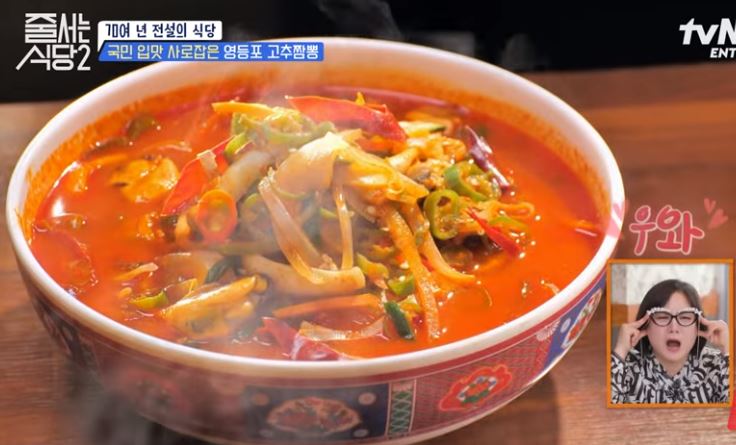 영등포에서 70년 전통을 자랑하는 맛집 고추짬뽕의 맛 매운 맛을 견디기 어려운 햇님 맛있게 먹는 짬뽕