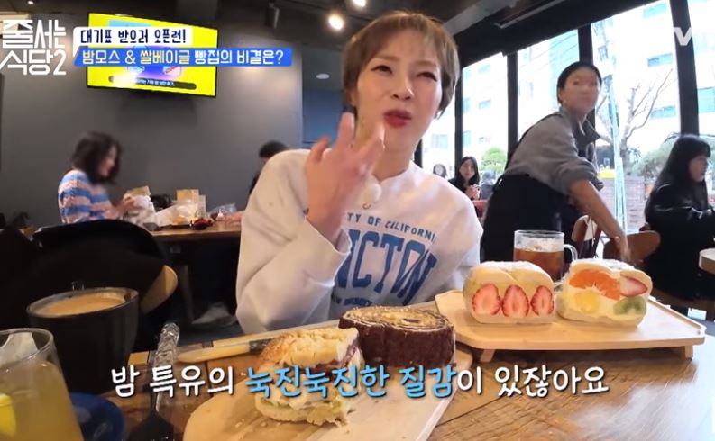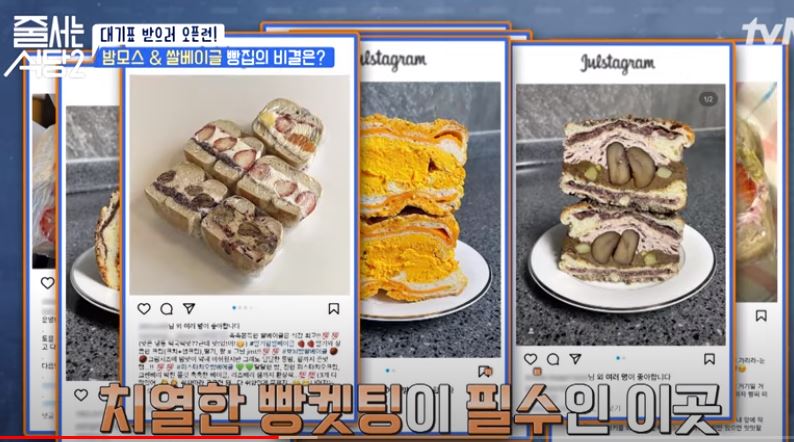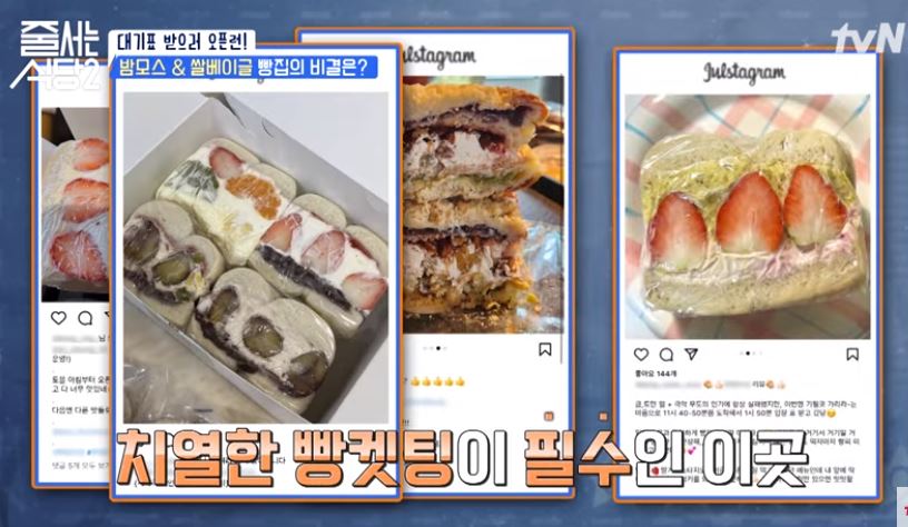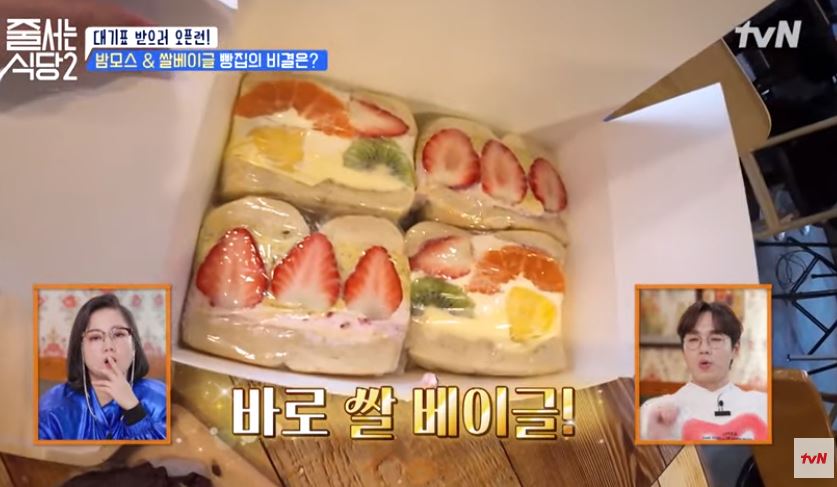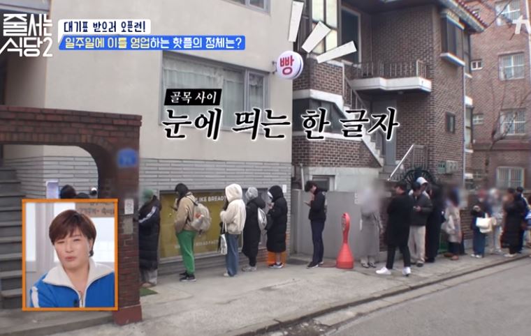 줄서는식당2, 입짧은 햇님은 마포구 망원동에 위치한 맘모스빵 맛집에서 2시간 30분만에 SNS로 유명한 쌀베이글샌드, 꾸덕바 빵들을 구매합니다.
