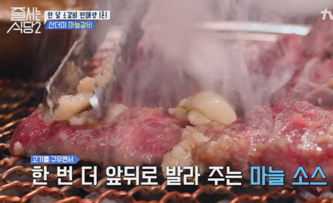 고기위에 있던 마늘을 불판위에 끓인후에 고기랑 찍어 드시면 됩니다. 참기름 소스에 마늘을 끓여 소갈비에 곁들이면 어떤 맛일까요?