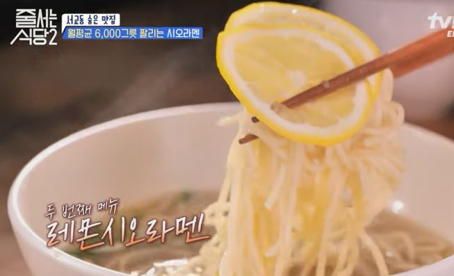 인기 메뉴 라면과 레몬시오를 맛보며 한 식사를 즐기는 모습 소개합니다.