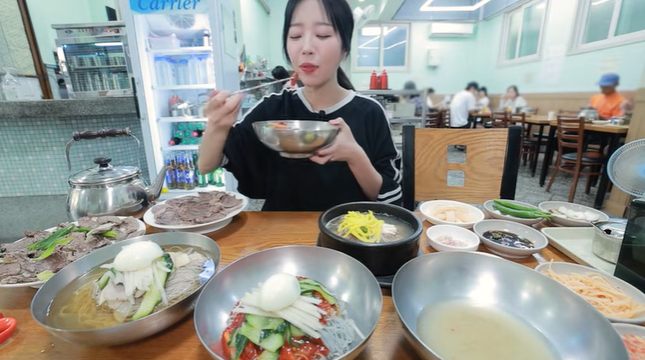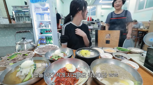 영상에서 주문한 메뉴를 보고 깜짝 놀랐어요. 평양냉면 2개, 회냉면 2개, 갈비탕 1개, 제육 1개, 수육 1개까지! 정말 다양하게 시켜서 맛을 보더라고요.