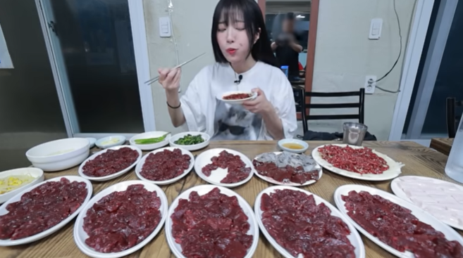 쯔양은 단순히 메뉴를 따로 먹는 것이 아니라, 등골과 뭉티기를 함께 먹거나, 주먹시를 살짝 익혀 먹는 등 다양한 조합으로 음식을 즐겼습니다.