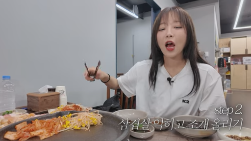 - 삼겹살이 적당히 익으면 그 위에 갈미조개를 올려 구워 함께 먹는 구조.