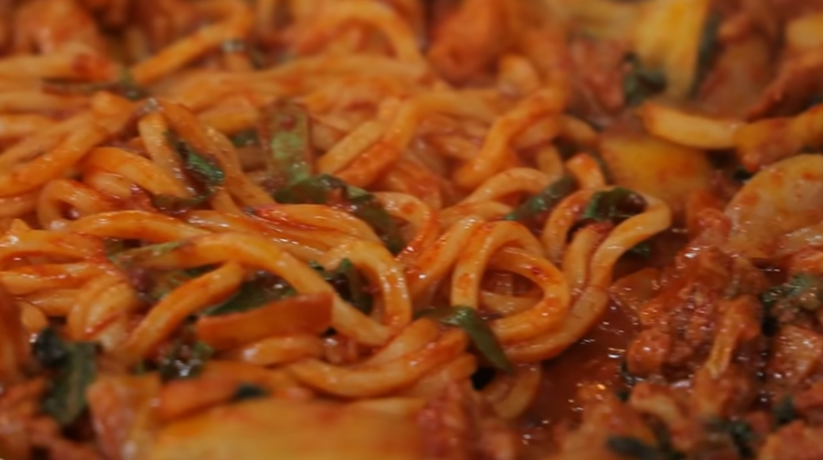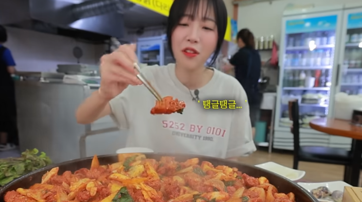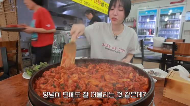 쯔양은 우동 사리를 추가했는데, 매콤한 양념이 면에 잘 배어들어 깻잎 향과 함께 정말 잘 어울렸다고 해요.