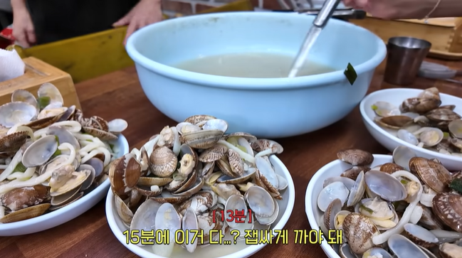 쯔양과 스태프는 장난스럽게 바지락 껍데기 빨리 까기 대결까지 펼쳤는데요,