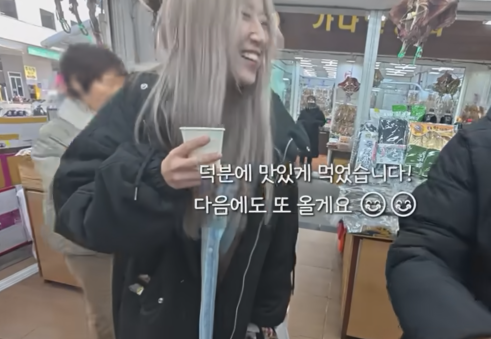 상인분들의 반응이 정말 재미있었어요. 처음에는 의아해하시다가, 쯔양이 회를 먹기 시작하자 점점 놀라는 표정으로 바뀌었답니다. "아이고, 저렇게 많이 먹을 수 있나?", "대단하네, 대단해!"라는 말씀들이 들려왔어요.