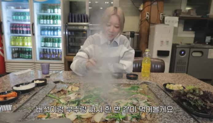 오리고기와 함께 구워지는 채소들도 빼놓을 수 없죠. 향긋한 부추, 양파, 감자, 느타리버섯, 그리고 떡까지! 이 모든 재료가 어우러져 풍성한 맛을 만들어냅니다.