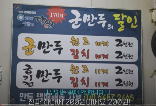 쯔양, 군만두 하나에 200원 40년 군만두만 구워온 달인군만두 먹방 원조 만두, 김치만두 군만두만 판매하며 10개 2,000원에 포장하면 11개 드립니다.