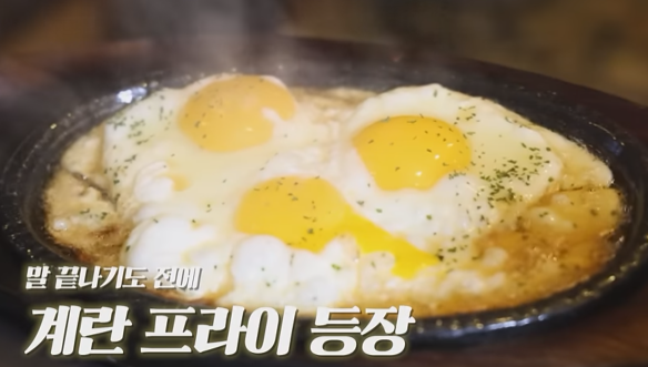 주문을 하고 기다리는 동안, 먼저 나온 건 뜻밖에도 계란 프라이예요. 노른자가 톡톡 터질 것 같은 완벽한 익힘 상태가 눈길을 사로잡습니다.