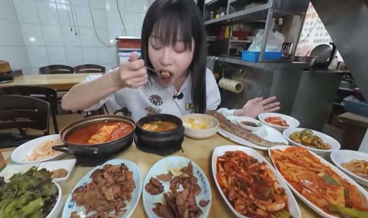 한입먹고 난뒤 너무 맛있다고 그동안 미국에서 먹었던 음식도 맛있었지만 한국에서 먹는 짠음식이 그리웠다고 쯔양의 먹방이 시작되었습니다.