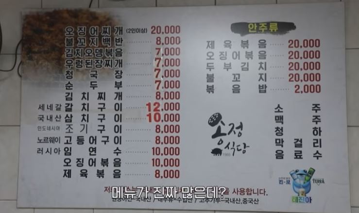 식당 주인도 많이 먹는다고 걱정을 합니다.