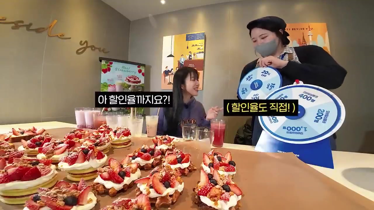 딸기가 100개 넘게 들어간 와플 토스트와 딸기가 듬뿍 들어간 음료들을 맛보면서 즐깁니다.