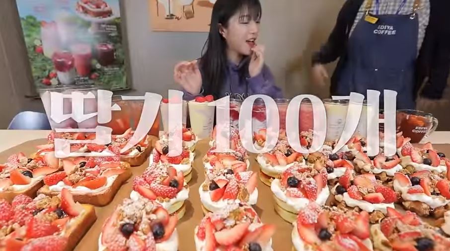 쯔양, 이디야커피와 함께 딸기 프로모션을 진행합니다. "음료만 7리터가 넘는다구요?! 다 먹을수 있을까..🤔 딸기만 100개 이상 들어간 와플 토스트 팬케이크 먹방"과 딸기 세트 이벤트 안내합니다.