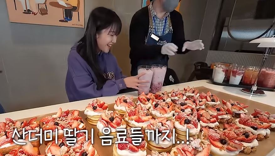 음료는 거의 '7L' 정도로 역대급 양을 담았으며, 음료와 함께 제공되었던 딸기 베이커리