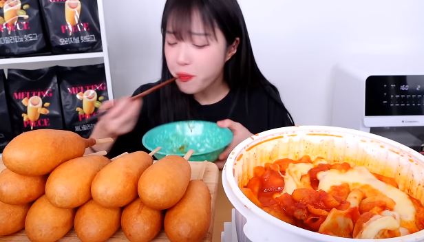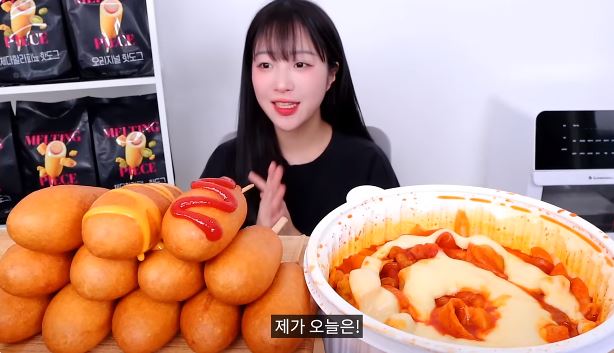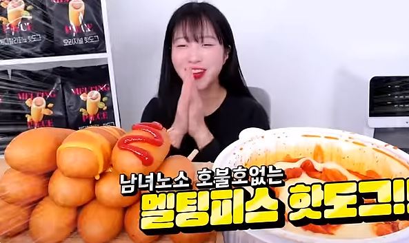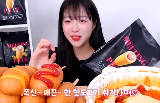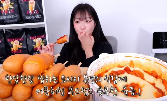 쯔양의 멜팅피스 하림의 핫도그 오리지널, 체다할라피뇨, 체다치즈 세 가지 먹방으로 바삭한 외피와 소시지의 촉촉함 치즈 소스와 조화가 매력적으로 맛있는 영상입니다.