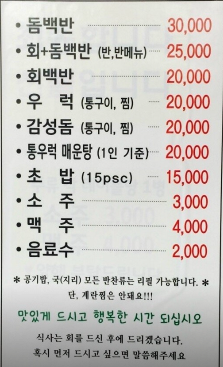 즉흥적으로 찾아간 곳인데, 맛있는 회백반과 유쾌한 사장님 덕분에 즐거운 시간을 보냅니다.