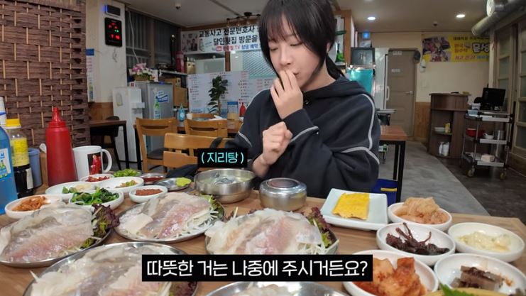 쯔양은 부산 구독자 식당을 몰래 방문해서 '회백반+돌돔구이'를 주문 부산에서 맛있는 음식과 재미난 사장님과 함께 즐거운 식사를 합니다.
