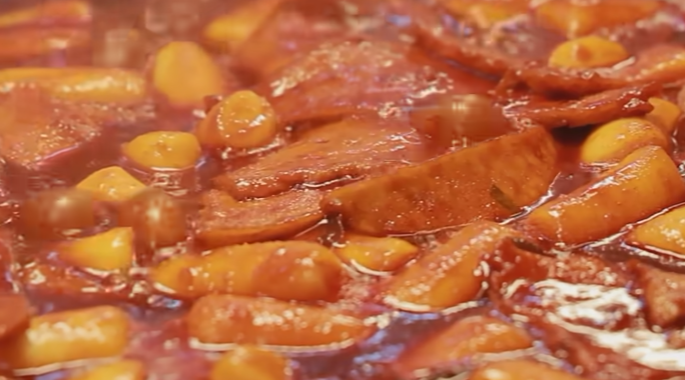 - 떡볶이: 물엿 베이스의 걸쭉하고 검붉은 소스. 누구나 익숙하게 느낄 달달한 맛