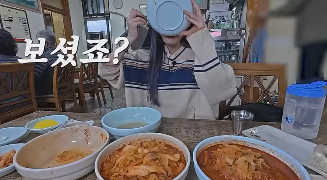 쯔양, 광주에서 사장님 몰래 쯔양세트 주문(삼겹살 + 김치전골) 🤣😍