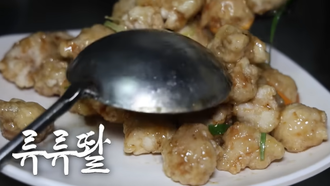 소스가 끈적하면서도 감칠맛이 강하고, 식감은 찹쌀 탕수육과 비슷하다고 합니다.
