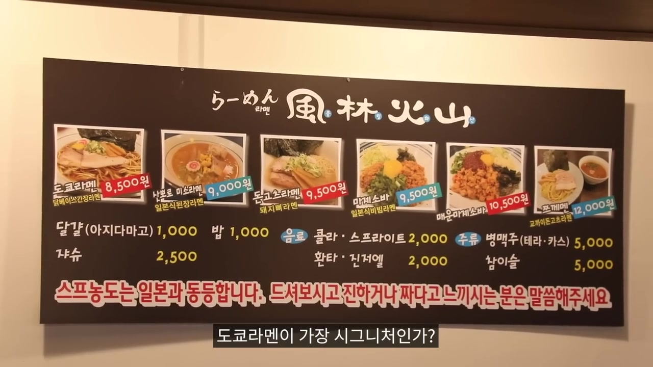 - '라멘풍림화산'은 20시간 동안 끓인 스톡으로 만든 라멘이 대표적인 메뉴입니다.