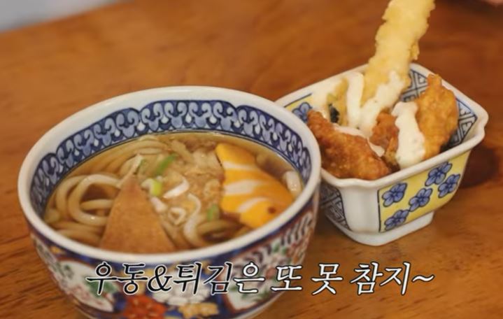 대왕초밥을 주문하면 우동이 두개나오는데 하나만 우동과 튀김을 먹습니다.