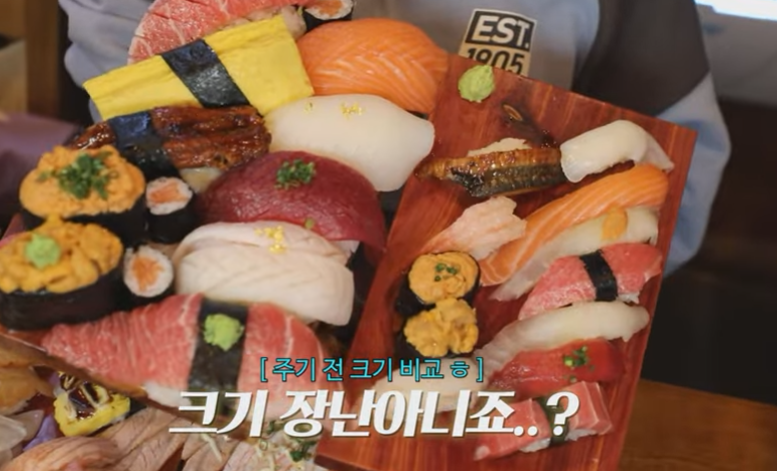 쯔양은 초밥이 생각보다 너무 커서 놀랐다고 일반 분들은 2명 이상 오셔야 한판 주문하는것이 좋을 것 같습니다.