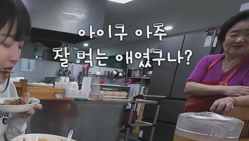 사장님은 부엌일을 모두 마치고 쯔양옆으로 와서 먹는 모습을 지켜보시며 흐뭇해 하십니다.