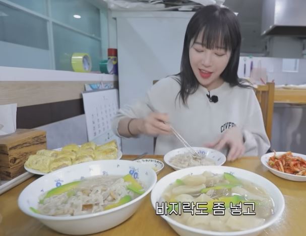 그릇째 들고 칼국수를 흡입하는 쯔양은 바지락도 하나씩 골라먹고 칼국수 한그릇을 모두 비웁니다.