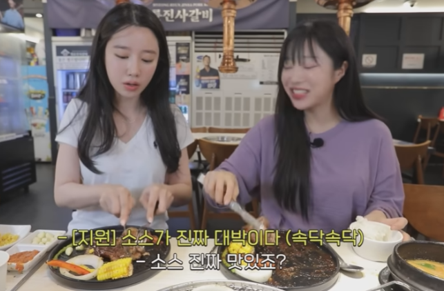 쯔양은 조현 배우와 함께 갈비 무한리필, 스테이크 무한리필 '명륜진사갈비'에서 신제품 출시 소식과 이벤트 소개를 하는 먹방영사입니다.