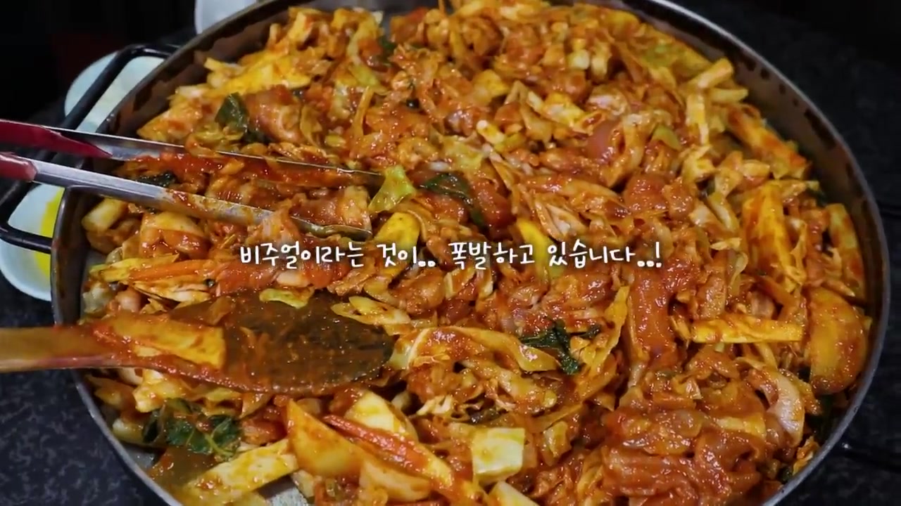 쯔양이 닭갈비를 10인분 주문하니 사장님이 넘친다고 안된다고 합니다.