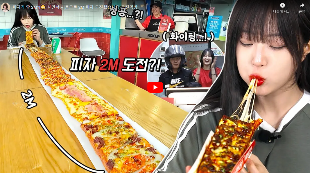 피자를 골고루 다 먹어 2m 도전 성공! 여러모로 매력적이고 즐거운 피자 먹방이었답니다.