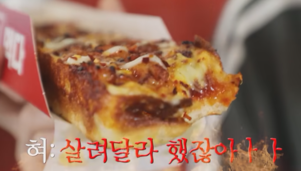 '피자먹다'에서 가장 매운 메뉴인 불닭피자에 혀가 혹사 당합니다.