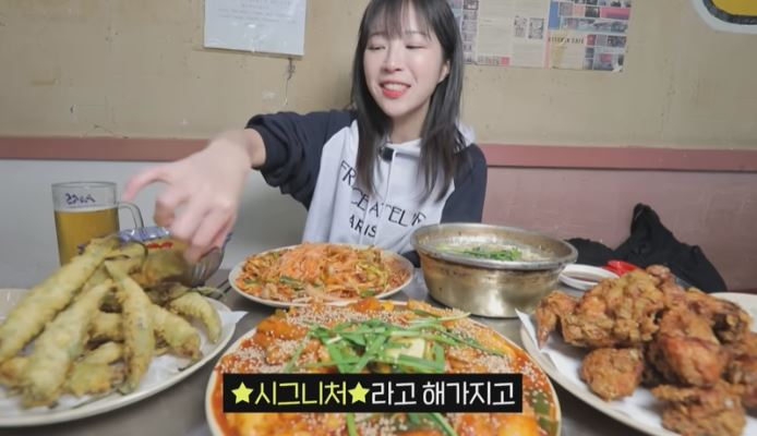 쯔양, 30년 전통 가로수길 초핫플 실내포차, 후라이드, 고추튀김, 떡볶이, 골뱅이무침, 순두부탕, 황도 먹방입니다.