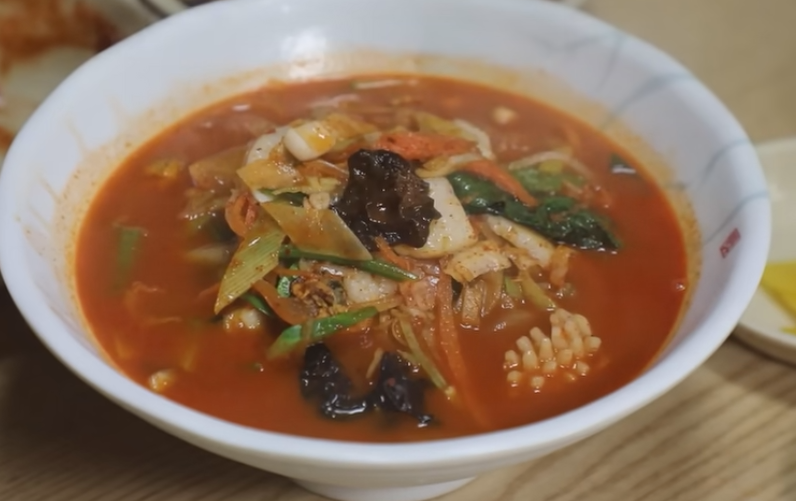 빨간 짬뽕은 얼큰하고 면도 쫄깃 해산물 가득 깊은 국물 맛입니다.