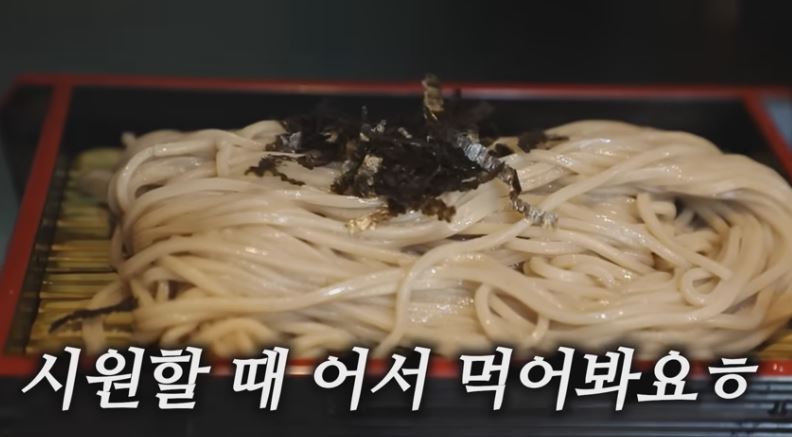 밀밀국수를 주문과 동시에 만들어서 나오며 판모밀관 유부초밥을 주문합니다.