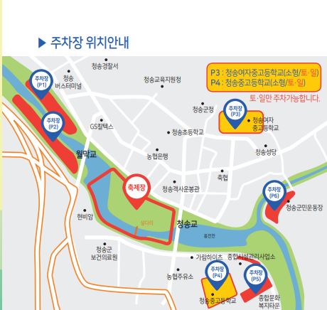 ▶청송사과축제장 : 경상북도 청송군 청송읍 월막교(청송ic에서 축제장까지 3분 소요)